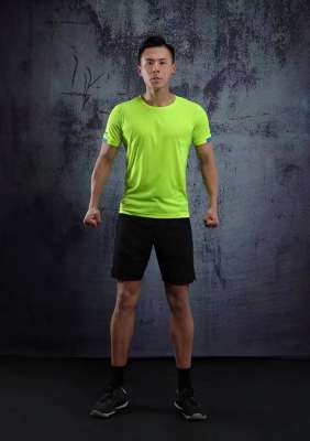 春夏新品 圓領(lǐng)短袖T恤 時尚運動文化衫 熒光綠